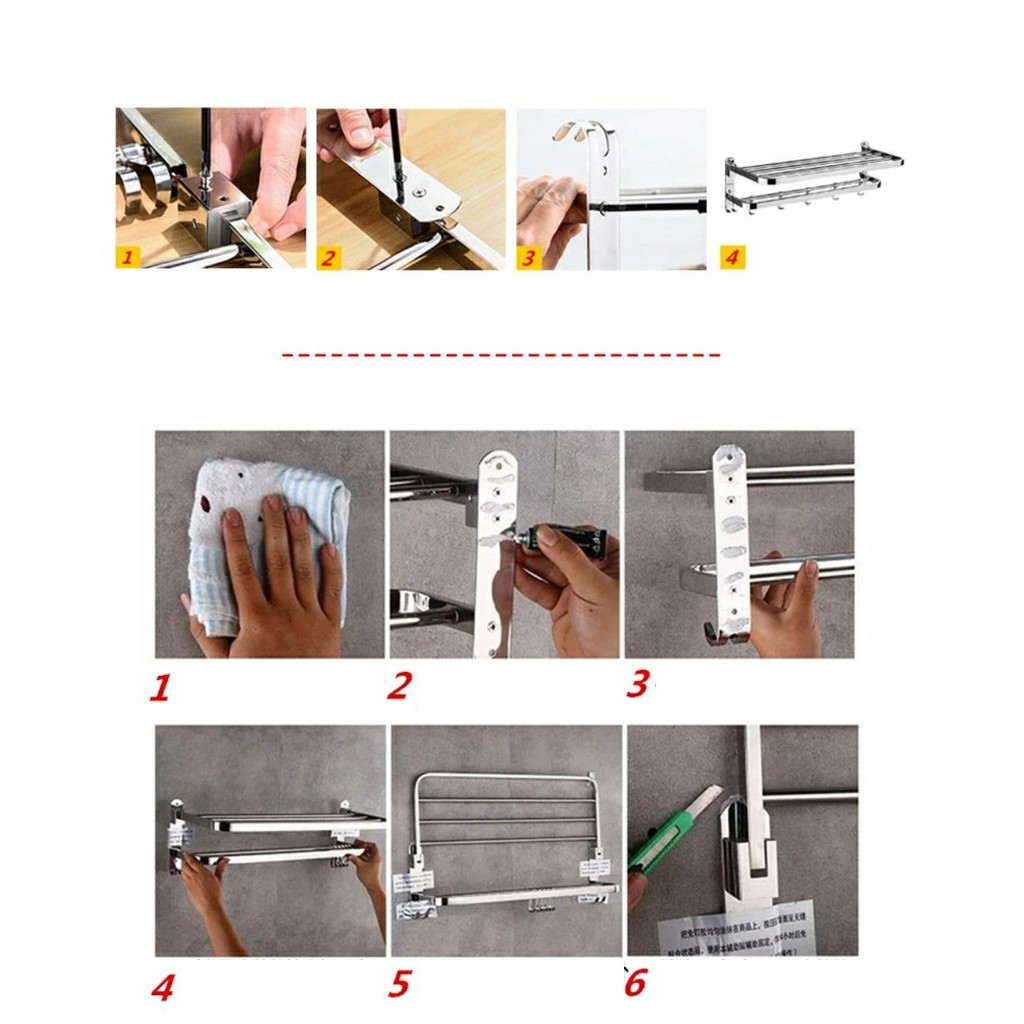 Giới thiệu Giá Treo Khăn Nhà Tắm INOX SUS304 lắp đặt Dán Tường gạch men hoặc Khoan - G304
