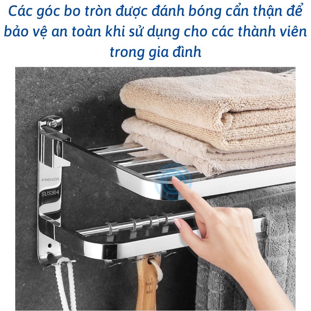 - Giá gồm nhiều thanh ngang được kết cấu hợp lý & cực kỳ chắc chắn, bạn có thể để quần áo, phụ kiện tắm trên kệ & treo vắt khăn bên dưới thật gọn gàng & tiện lợi khi sử dụng.