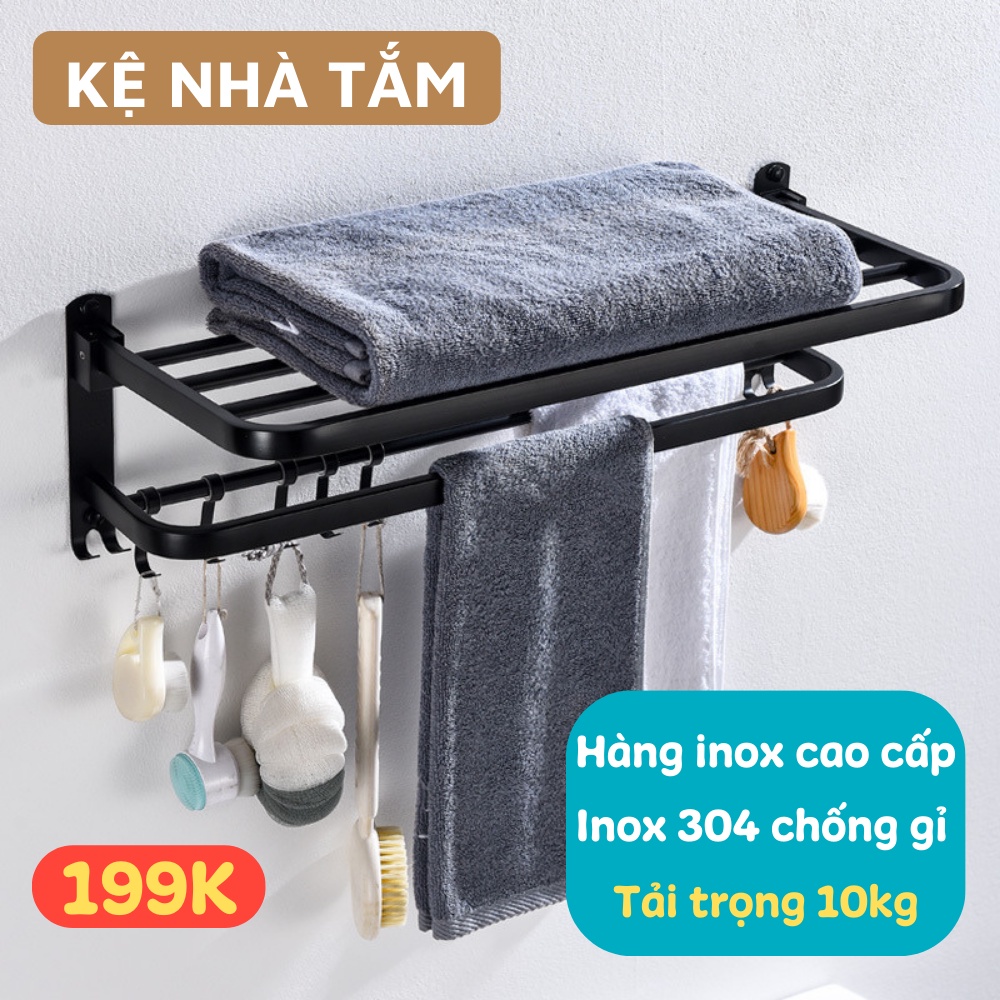 - Giá gồm nhiều thanh ngang được kết cấu hợp lý & cực kỳ chắc chắn, bạn có thể để quần áo, phụ kiện tắm trên kệ & treo vắt khăn bên dưới thật gọn gàng & tiện lợi khi sử dụng.