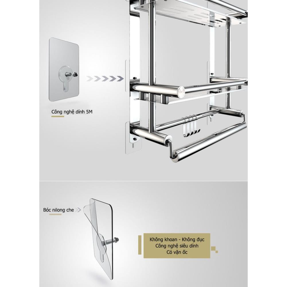 Giá Treo Khăn Nhà Tắm, Kệ INOX 304 dính tường không cần khoan lắp đặt dễ dàng
