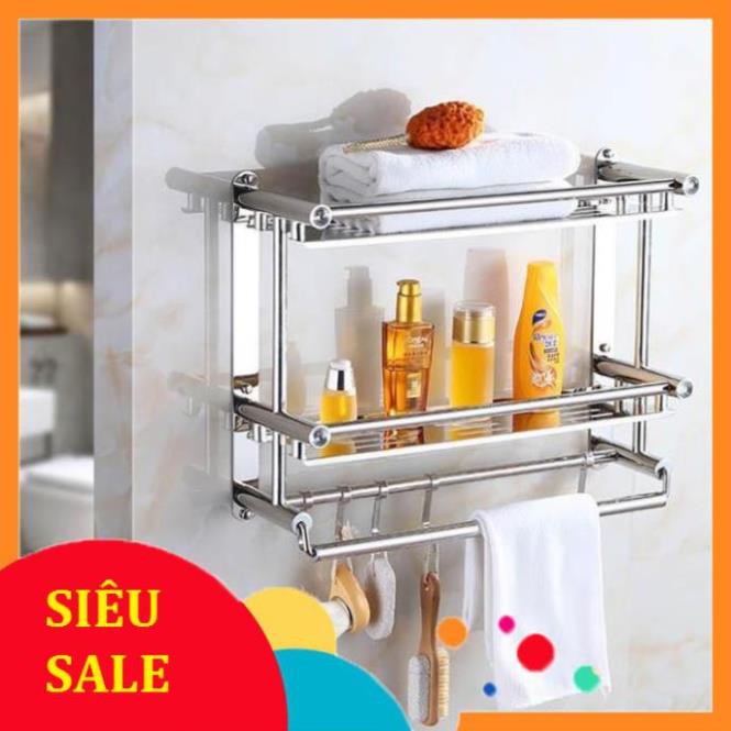 - Kệ treo khăn 2 tầng inox giúp cho không gian phòng tắm nhà bạn thêm sang trọng.