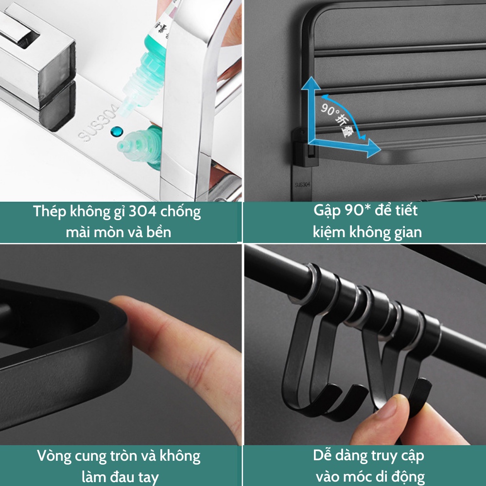 Giá Treo Khăn Nhà Tắm, Kệ Treo Khăn Có Thể Gấp Gọn Tiện Dụng ATILA SHOP