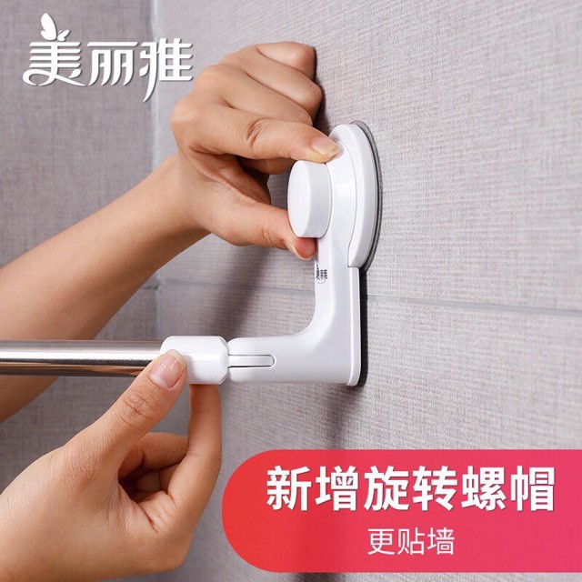 Đặt miếng hít lên vị trí cần treo, lắp thanh treo vào sau đó ấn mạnh để hít vào bề mặt tiếp tục lắp miếng nhựa tròn vào cố định
