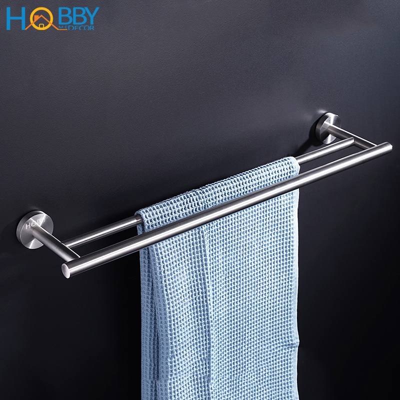 Giá treo khăn tắm Inox 304 HOBBY Home decor 2TT khoan tường dài 40cm không rỉ sét - 2 thanh treo (khoan tường)