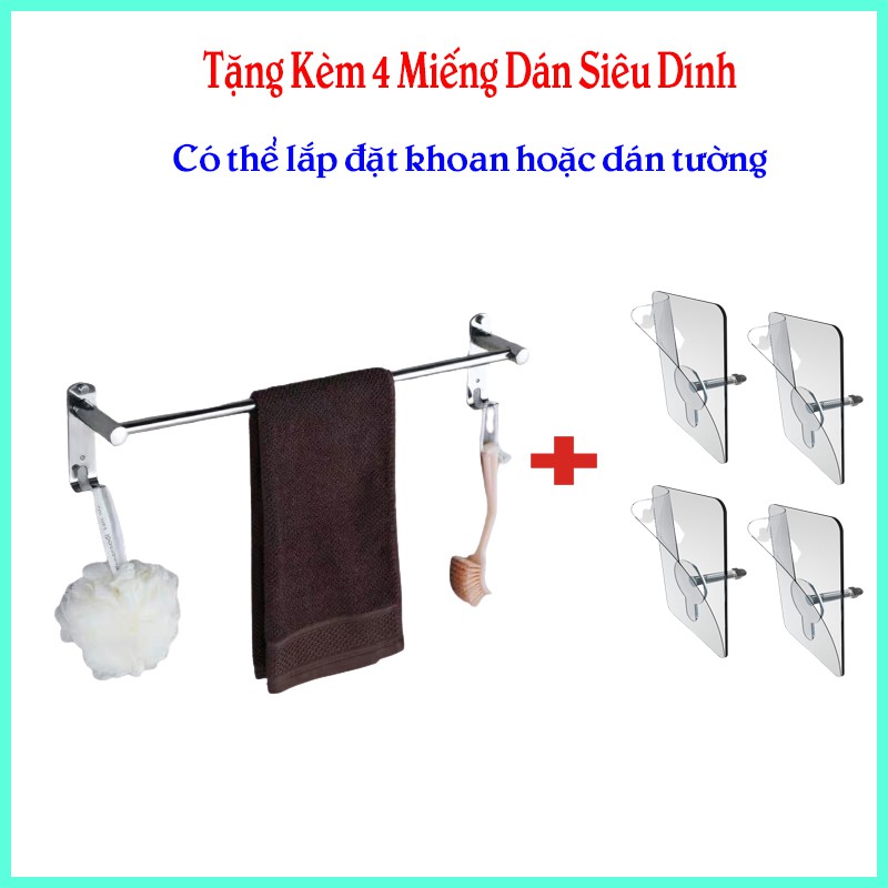 Giá Treo Khăn Tắm Inox Dán Tường - Thanh Inox Sáng Bóng Cùng Keo Dán Siêu Chịu lực