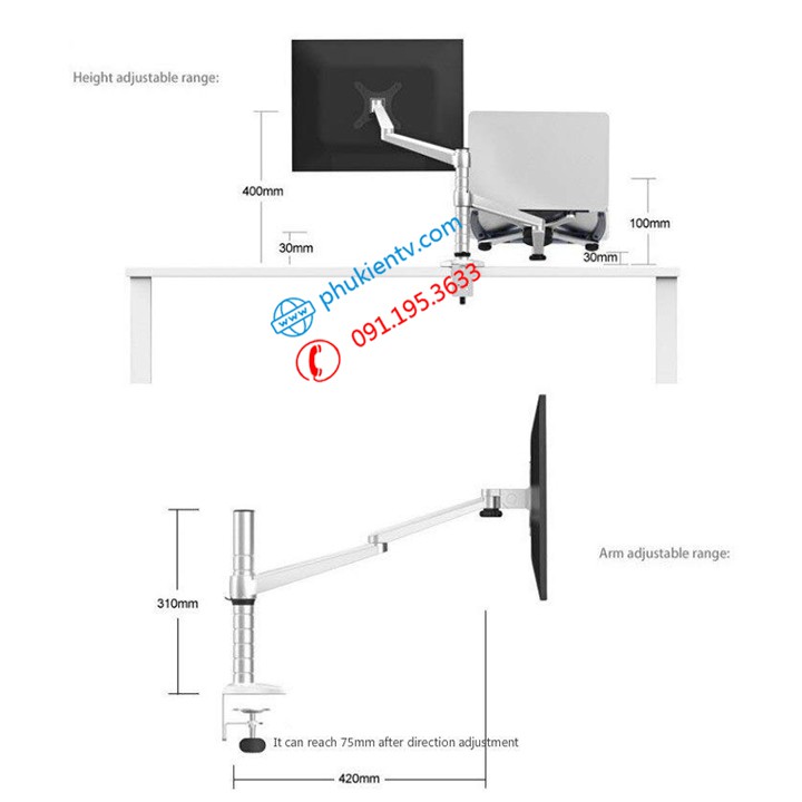 Máy tính & Laptop > Phụ Kiện Máy Tính Khác || Giá Treo Màn Hình 17 - 27 Inch Kèm Kệ Đỡ Laptop 10 - 15 Inch - Hợp Kim Nhôm Cao Cấp - Model: OA - 7XCòn hàng