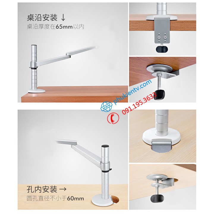 ✔ Trọng lượng màn hình hỗ trợ tối đa: 7 kg x 2 cánh tay