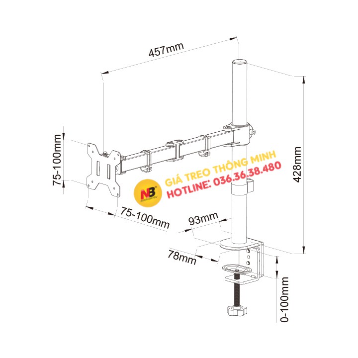 * Tương thích chuẩn tâm lỗ VESA 75 x 75 cho tới 100 x 100 mm