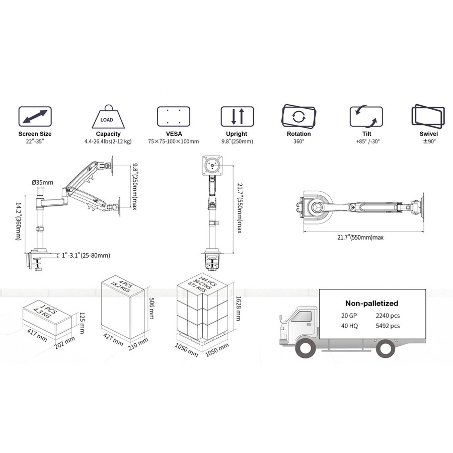 ✪ Thông số kỹ thuật tay đỡ màn hình NB H100: