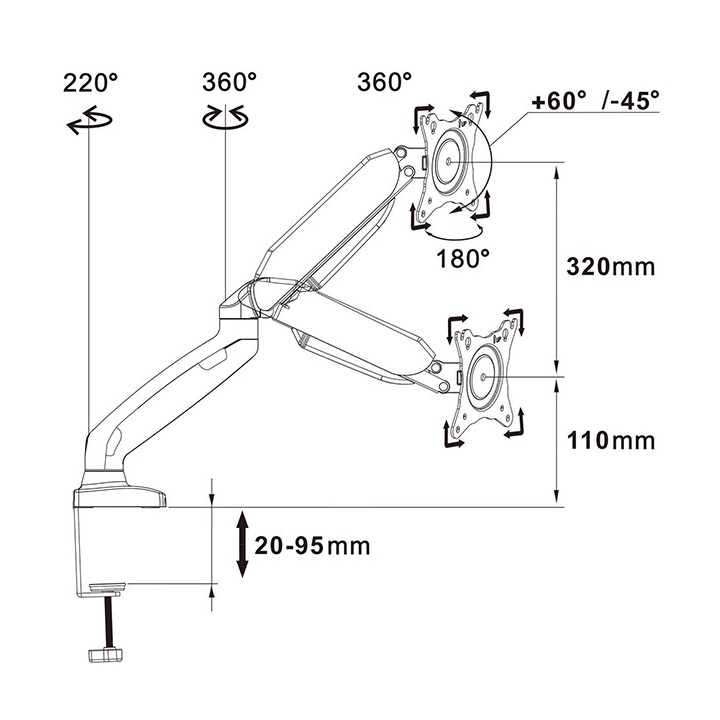 GIÁ TREO MÀN HÌNH MÁY TÍNH 27 INCH ARM MÀN HÌNHTính năng: