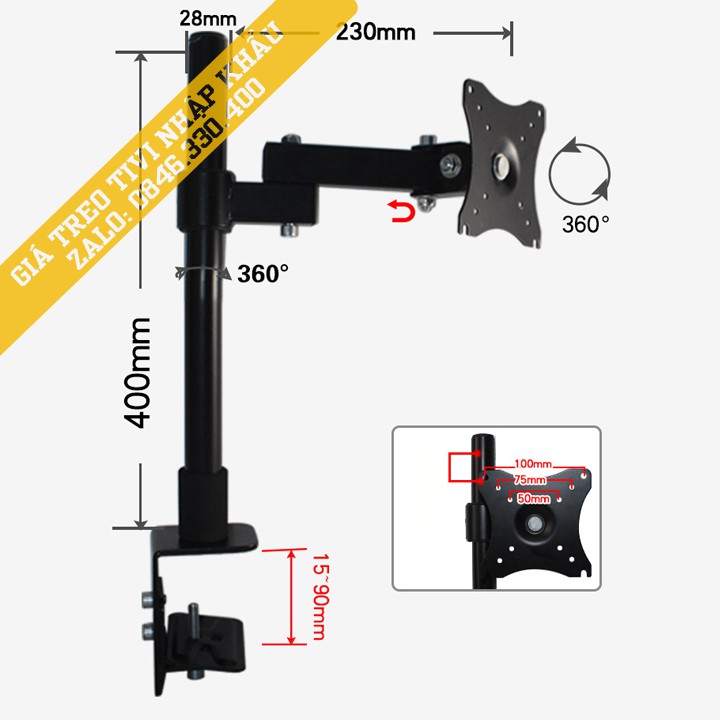 * Tương thích chuẩn tâm lỗ VESA 75 x 75 cho tới 100 x 100 mm