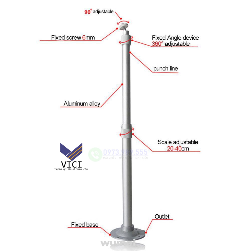 ✅ Giá Treo Máy Chiếu Mini 20-40CM ốc đơn 6mm phù hợp cho máy chiếu mini, máy chiếu led, máy chiếu androi, máy chiếu phim full hd, các dòng máy bé hiện nay trên thị trường. ( Đặc điểm nhận dạng là quý khách xem lỗ ốc bắt bên dưới máy chiếu có đề kích thước 6mm ngay chính giữa máy)🔷 🔷 Thông số kỹ thuật :