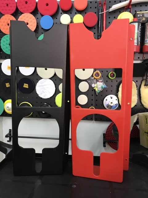 Giá treo máy đánh bóng giúp gara của bạn trông chuyên nghiệp và gọn gàng hơn, ghi điểm trong lòng khách hàng. Giá treo bằng chất liệu nhựa cứng cáp và bền, có thể treo cùng lúc 2 máy (1 máy đánh bóng + 1 máy chà nhám).Có 2 màu đen và đỏ cho bạn lựa chọn.