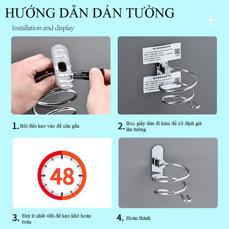 - Tên sản phẩm: Giá Treo Máy Sấy Tóc Dán Tường