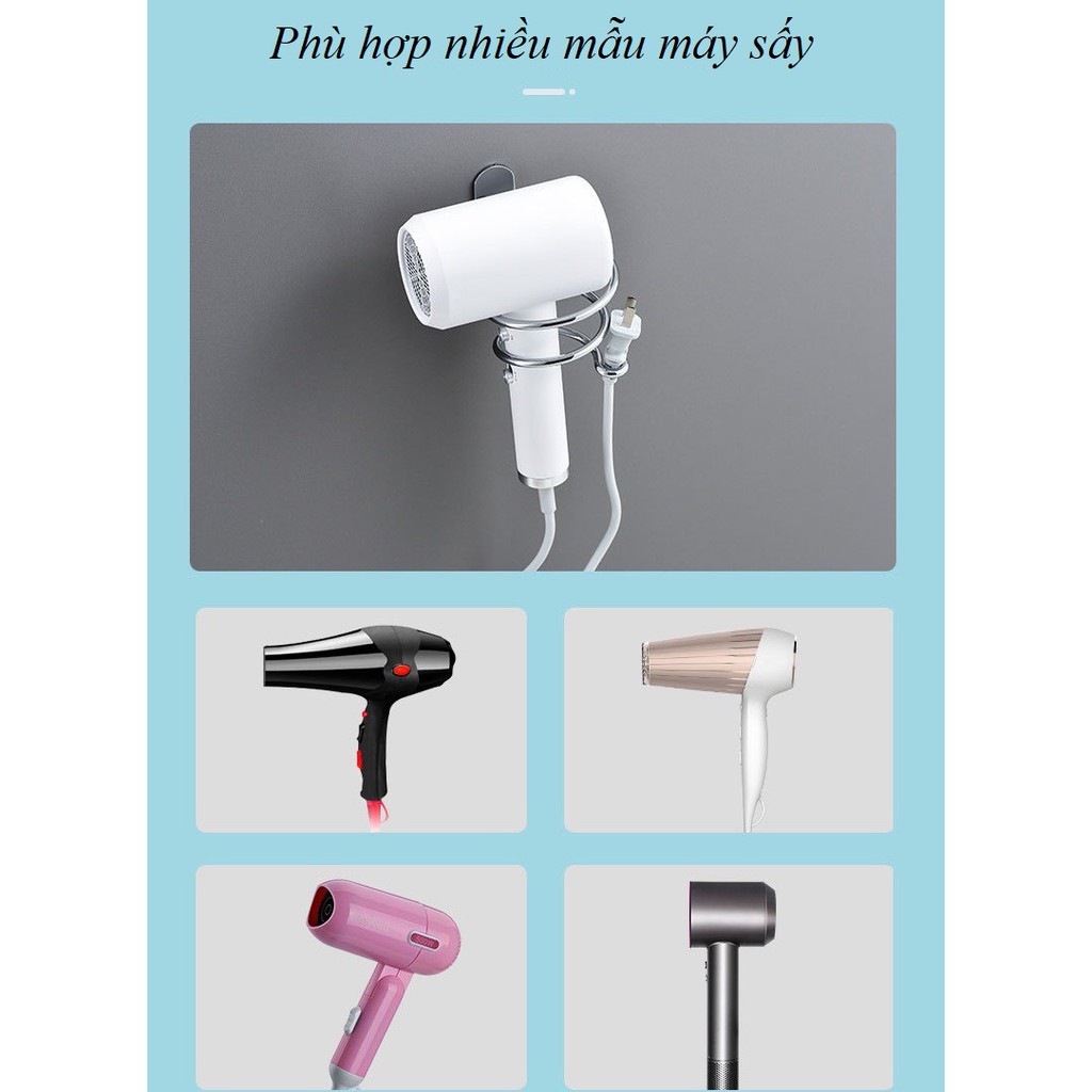 Giá Treo Máy Sấy Tóc Gắn Tường Inox 304 Sang Trọng Thẩm Mỹ Không Khoan Đục