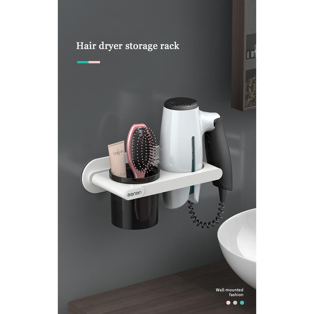 Giá Treo Máy Sấy Tóc OENON Tặng Kèm Cốc Để Đồ Nhà Tắm Chất Liệu Nhựa ABS Lắp Đặt Dán Tường Không Cần Khoan Vít