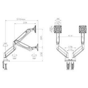 - Chiều cao màn hình tối đa từ bàn làm việc 530 mm (trung tâm của màn hình)