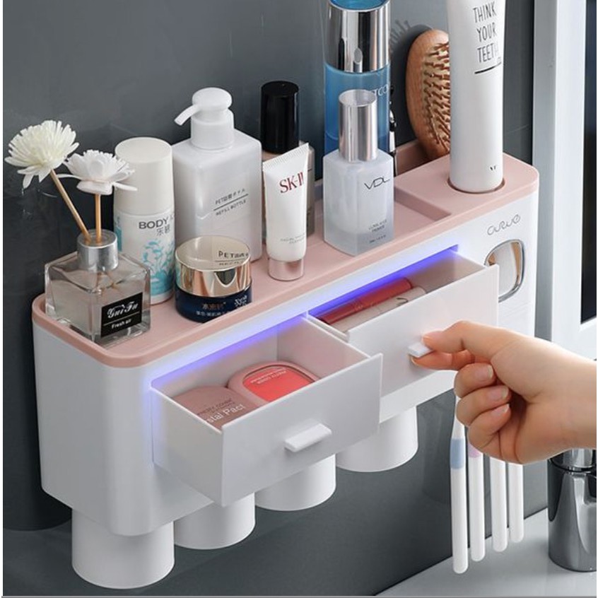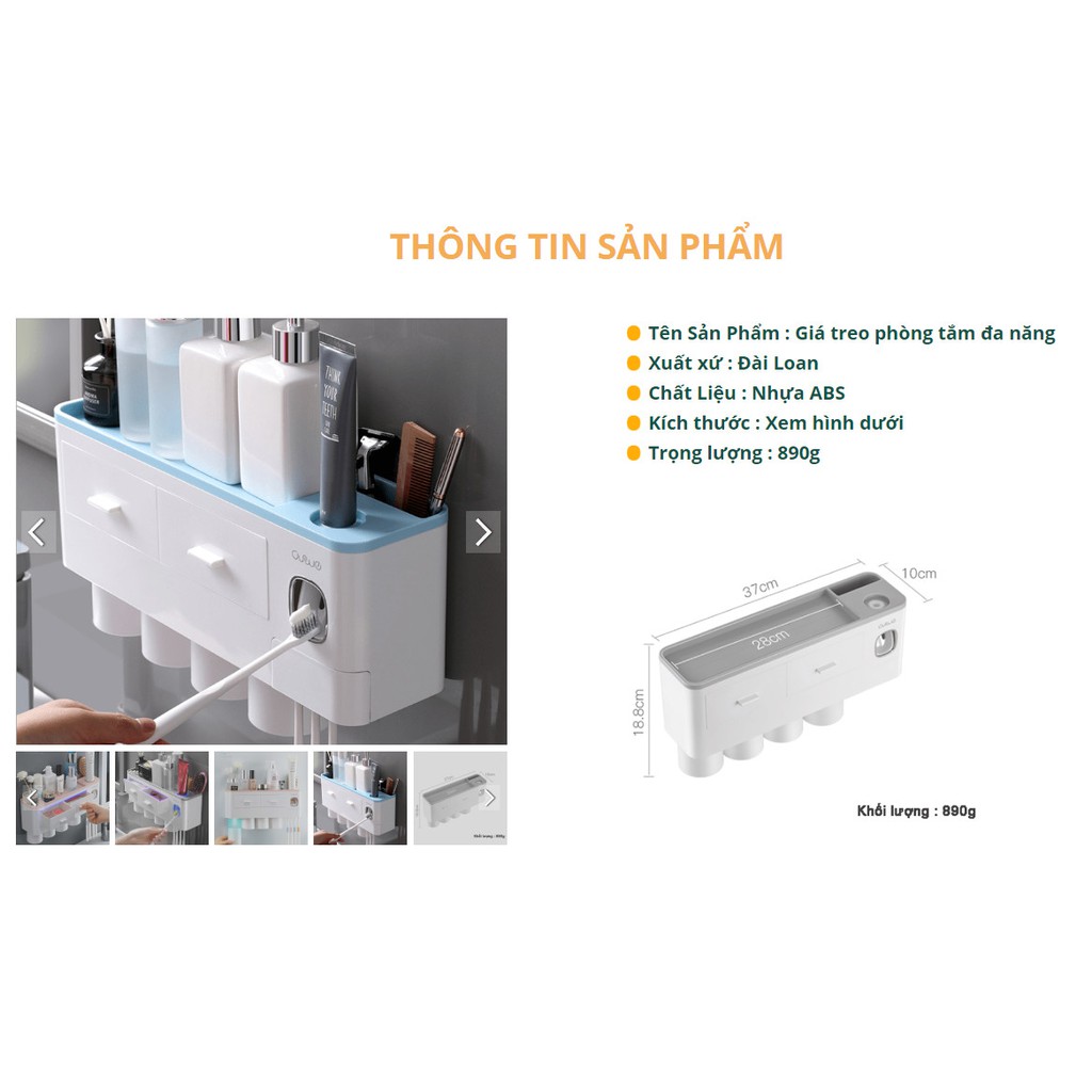 GIÁ TREO PHÒNG TẮM ĐA NĂNG 4Cup ABS PP Nhật Bản (Xám trắng)Giá treo tích hợp nhiều tính năng. Với nhiều ngăn, mỗi ngăn một công dụng, giúp bạn có thể cất gọn gàng các đồ dùng trong phòng tắm. Có 2 ngăn chống nước, 4 cốc, 8 móc treo bàn chải, 1 ngăn dành riêng cho kem đánh răng tiện lợi.