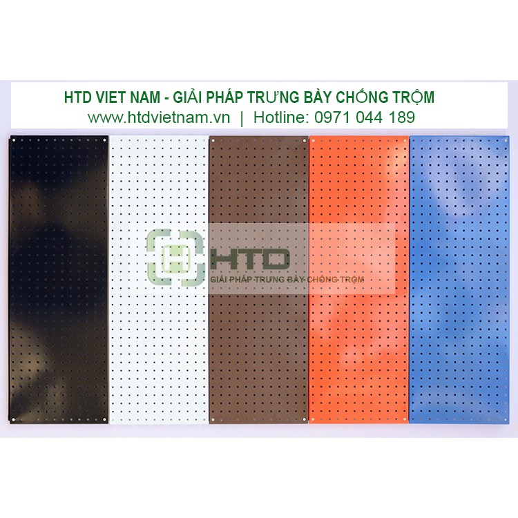 Được sử dụng rộng rãi tại các cửa hàng phụ kiện điện thoại, linh kiện điện tử, shop thời trang, cửa hàng trang sức, phụ kiện, cửa hàng trưng bày vật dụng cơ khí. Tấm thép đục lỗ của HTD VIET NAM có nhiều màu sắc khác nhau, giúp cho khách hàng có nhiều lựa chọn phong phú cho cửa hàng của mình, phù hợp với từng mặt hàng trưng bày. Tấm lỗ của chúng tôi có thể cài được nhiều loại móc với các kích thước khác nhau