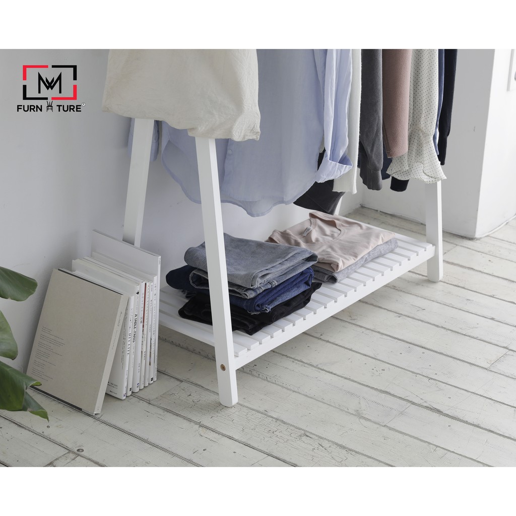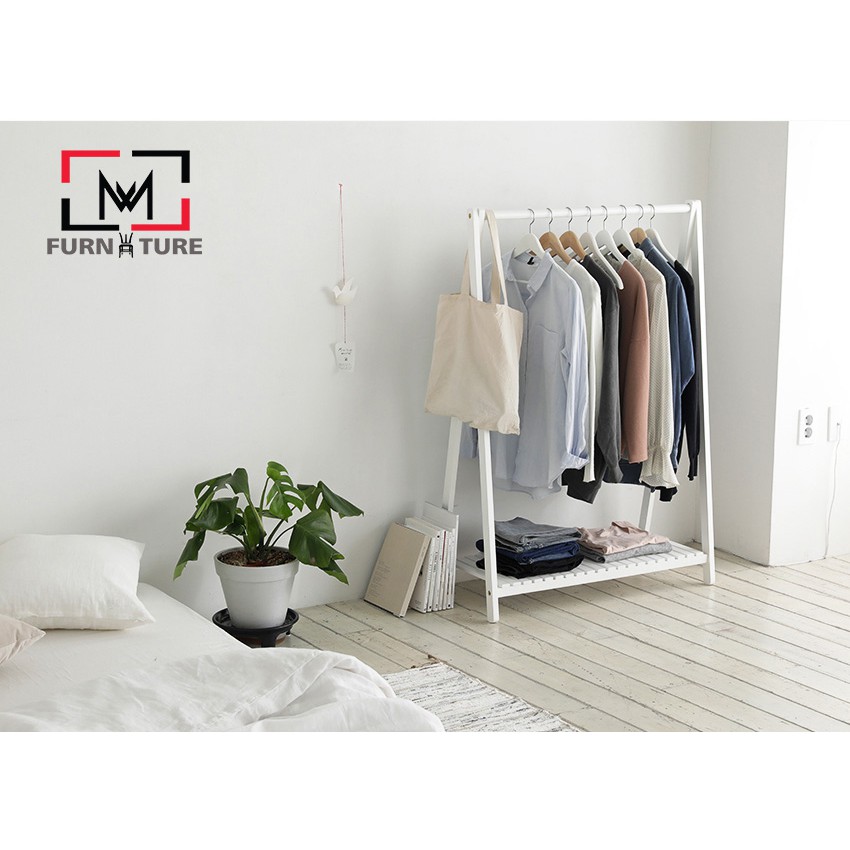 Nhà cửa & Đời sống > Dụng cụ chăm sóc nhà cửa > Dây phơi & giá phơi quần áo || Giá treo quần áo 1 tầng màu trắng gỗ thông nhập khẩu MW FURNITURE - Nội thất căn hộCòn hàng