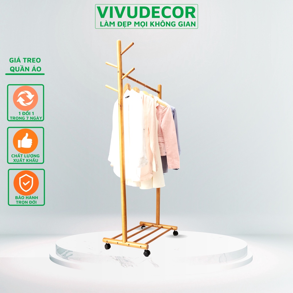 Giá Treo Quần Áo Vivudecor, Kệ treo quần áo 2 tầng 100% bằng gỗ tự nhiên.1.Mô tả sản phẩm Giá treo quần áo Vivudecor: