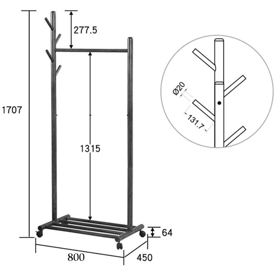 Kích thước giá treo quần áo: 80x45x170cm -Thân cây đường kính 4cm.