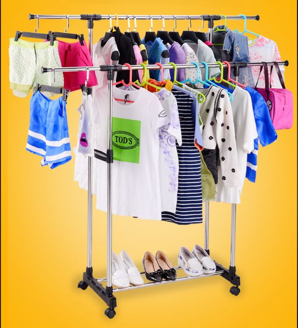 Nhà cửa & Đời sống > Dụng cụ chăm sóc nhà cửa > Dây phơi & giá phơi quần áo || Giá Treo Quần Áo 2 Giàn inox có bánh xeCòn hàng