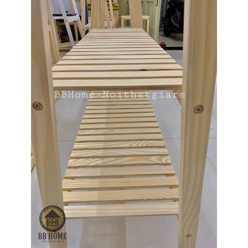 - Chất liệu: Gỗ thông Mỹ màu tự nhiên, vân gỗ dày cứng chắc.