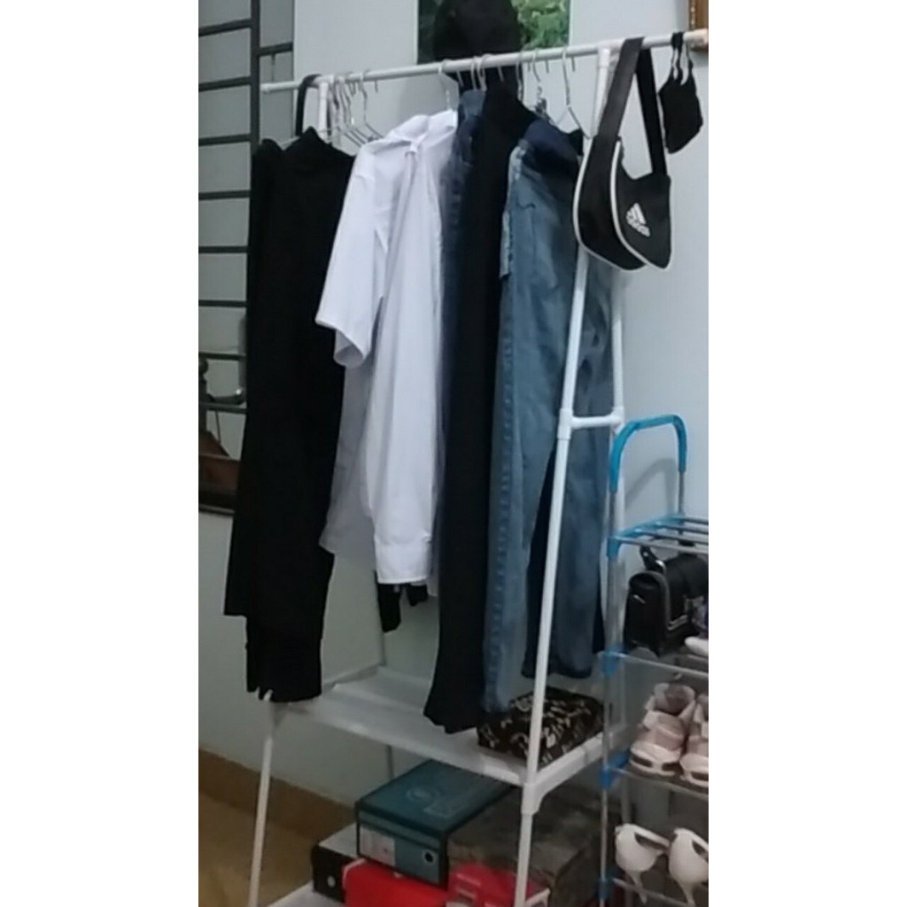 - Kệ treo quần áo chữ A 3 tầng 2 ngăn ngoài treo quần áo, túi xách sản phẩm còn thuận tiện để các loại chăn màn, giày dép... .