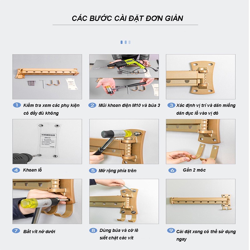 💯 Ứng dụng: Treo quần áo, lắp trong phòng tắm, sảnh, phòng ngủ, phòng thay đồ...