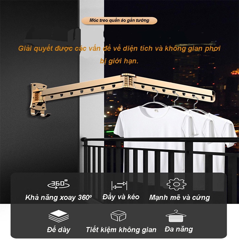 GIÁ TREO QUẦN ÁO GẤP GỌN, giá treo đồ gắn tường xoay 360 độ thông minh chịu lực - LB36214✨ Thông tin sản phẩm: