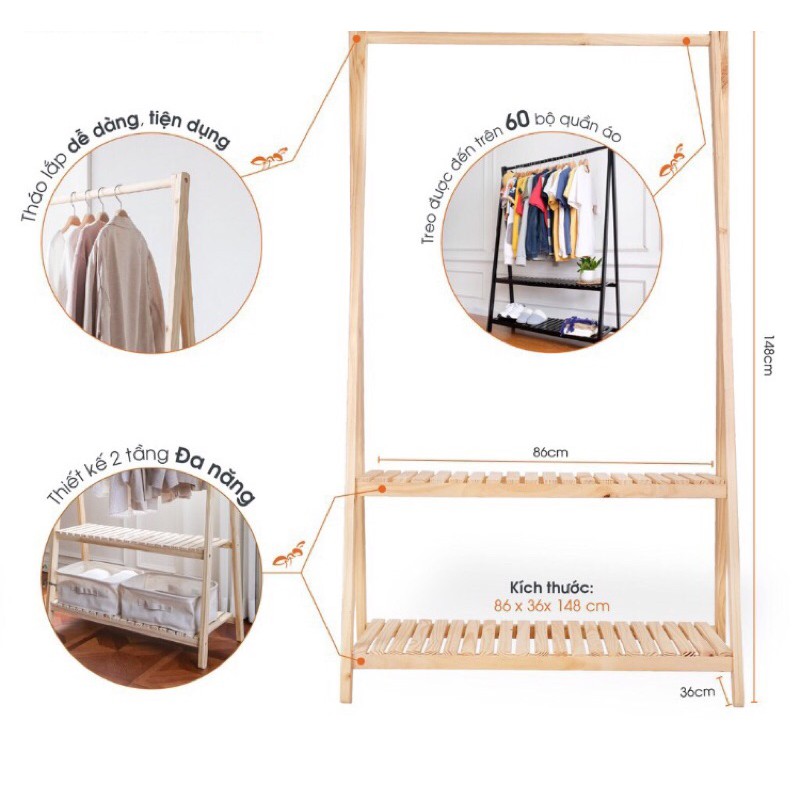 Giá Treo Quần Áo Gỗ - Kệ Treo Quần Áo chữ A loại 1 tầng và loại 2 tầng