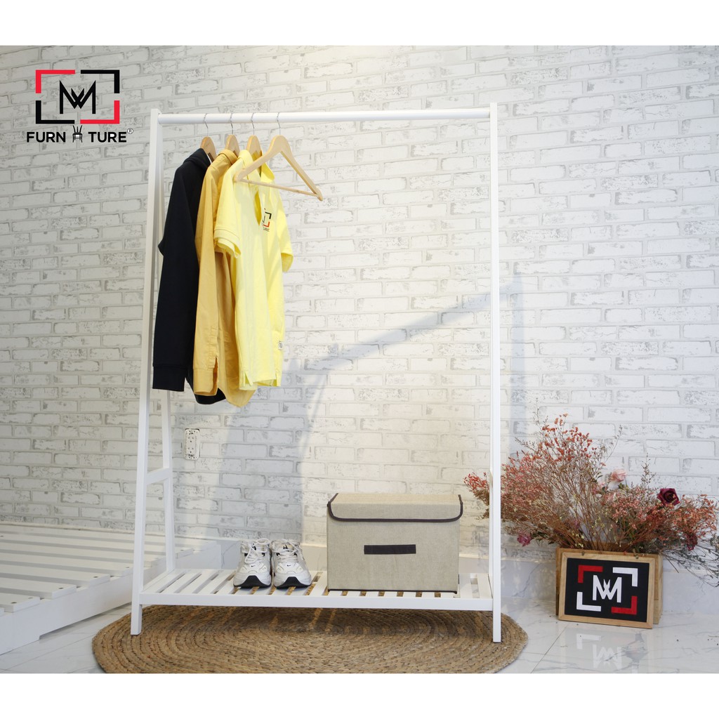 Nhà cửa & Đời sống > Dụng cụ chăm sóc nhà cửa > Dây phơi & giá phơi quần áo || Giá treo quần áo gỗ lắp ráp 1 tầng size ngang 1 mét màu trắng thương hiệu MW FURNITURE - Nội thất căn hộCòn hàng