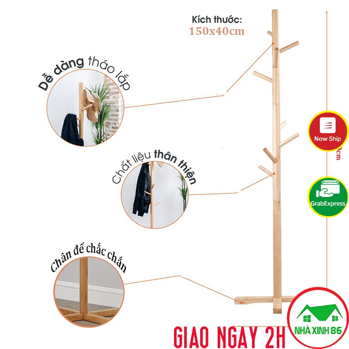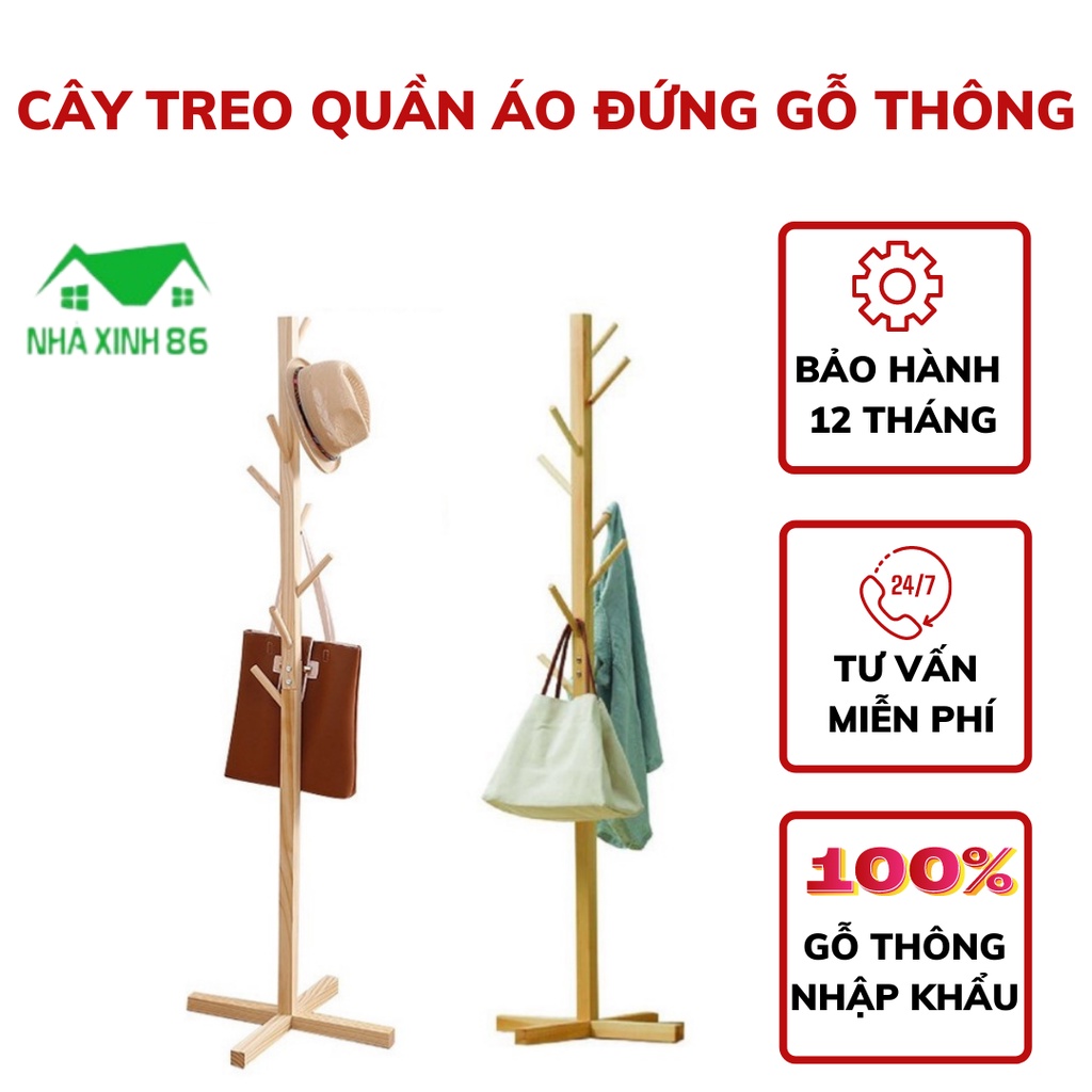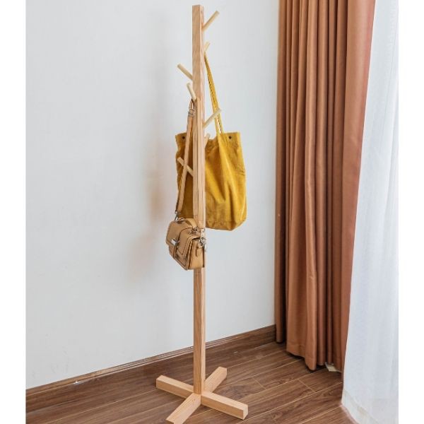 Cây treo quần áo gỗ thông cao cấp phong cách Hàn Quốc đã xử lý mối mọt cao 120cm, cây treo đồ gỗ decor