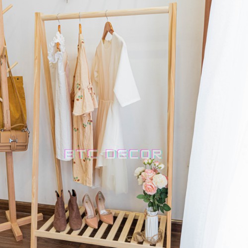 🍀 THÔNG TIN Giá Treo Quần Áo Gỗ Thông 1 Tầng BTC DECOR