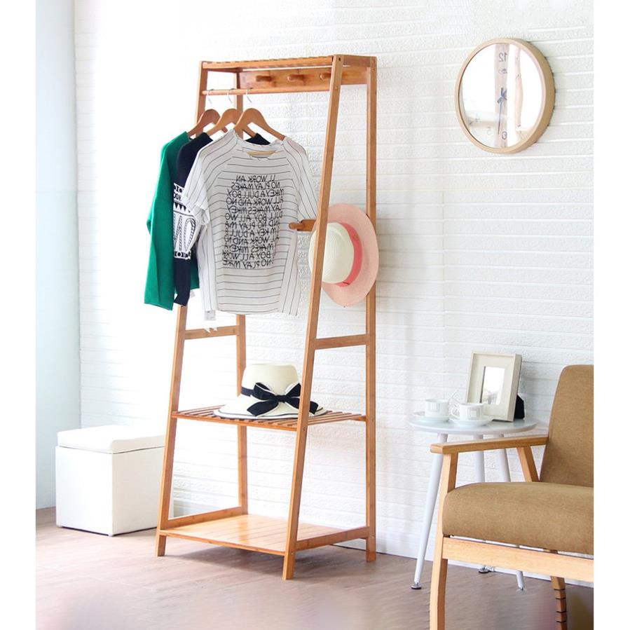 Giá treo quần áo gỗ thông nhập khẩu không mối mọt, tặng 2 móc treo quần áo gỗ