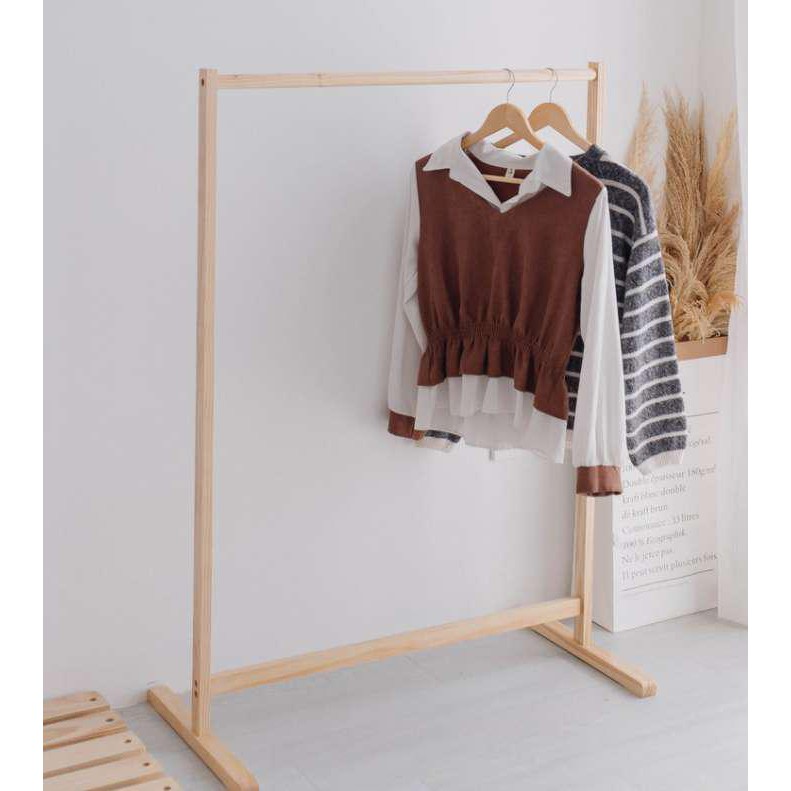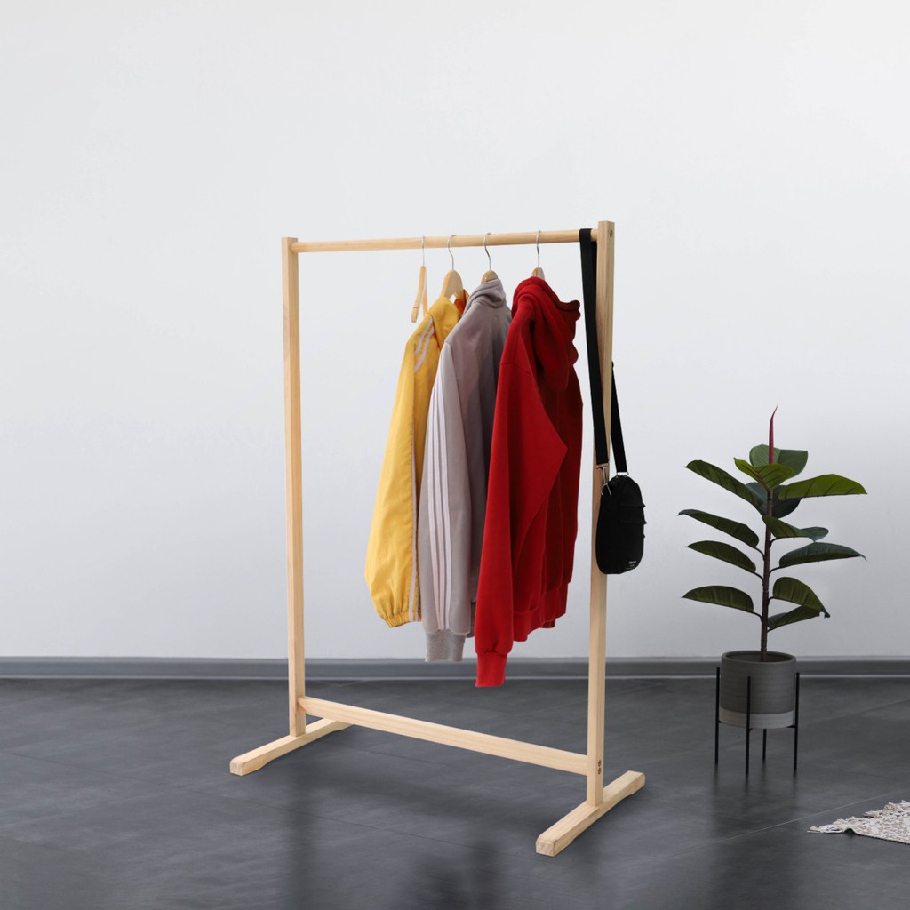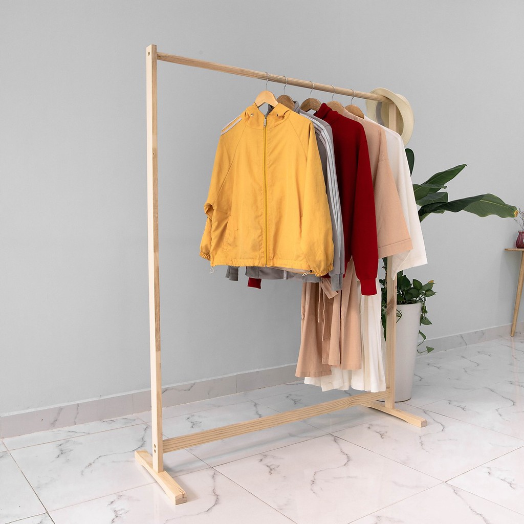 Giá treo quần áo gỗ thông tự nhiên/ Kệ gỗ treo quần áo đa năng Single Hanger decor nhà cửa