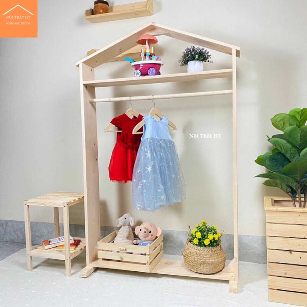 Giá treo quần áo - Kệ Treo Quần Áo Ngôi Nhà Cho Bé Gỗ Thông Nhập Khẩu.