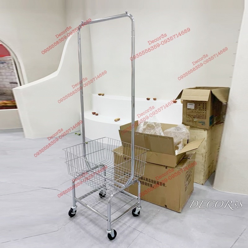 giá treo quần áo kèm kệ để đồ ,Kệ đơn treo đồ kèm giỏ , có sẵn