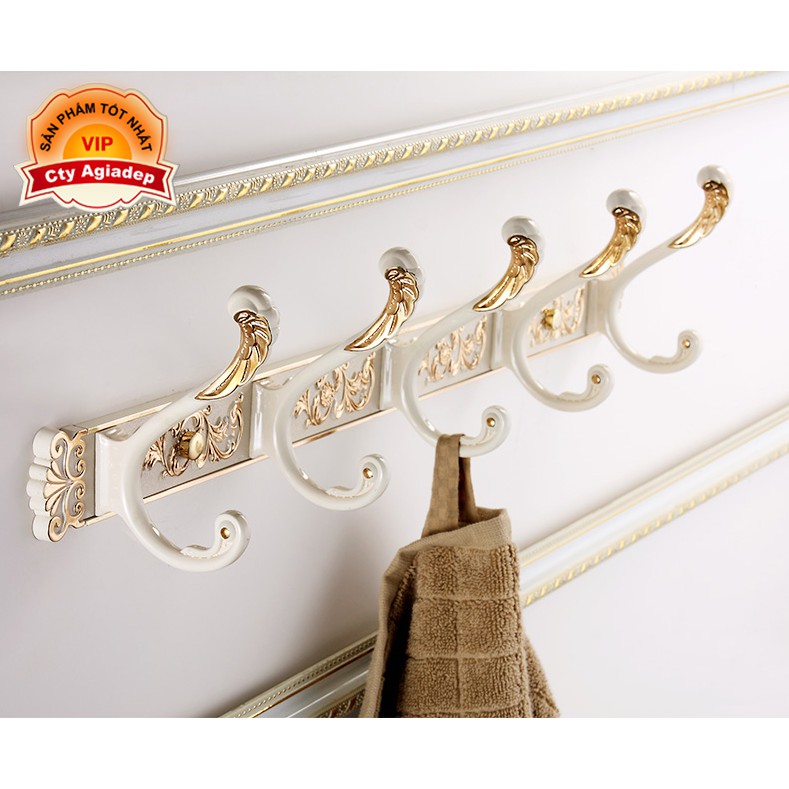 Nhà cửa & Đời sống > Dụng cụ chăm sóc nhà cửa > Dây phơi & giá phơi quần áo || Giá treo quần áo, khăn tắm 5 móc - Tân cổ điển (Mạ vàng trắng) - Cao cấp ITALIACòn hàng