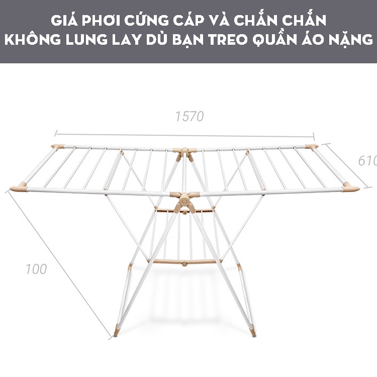 ✅ Giá phơi được làm từ chất liệu thép carbon và nhựa PP cứng cáp và chắc chắn, không lung lay dù bạn treo quần áo nặng.