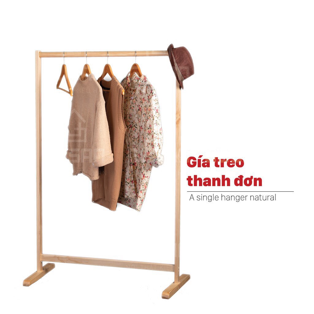 Giá Treo Quần Áo Thanh Đơn Gỗ Thông Nhập Khẩu Cao Cấp - Kệ Treo Quần Áo Màu Gỗ Tự Nhiên - BẢO HÀNH 1 ĐỔI 1