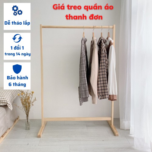 Nhà cửa & Đời sống > Dụng cụ chăm sóc nhà cửa > Dây phơi & giá phơi quần áo || Giá Treo Quần Áo Thanh Đơn - Kệ Treo Quần Áo Decor Phòng Phong Cách Hàng Quốc, Gỗ Thông Cao Cấp Bền Đẹp - KT: 126X88X44Còn hàng