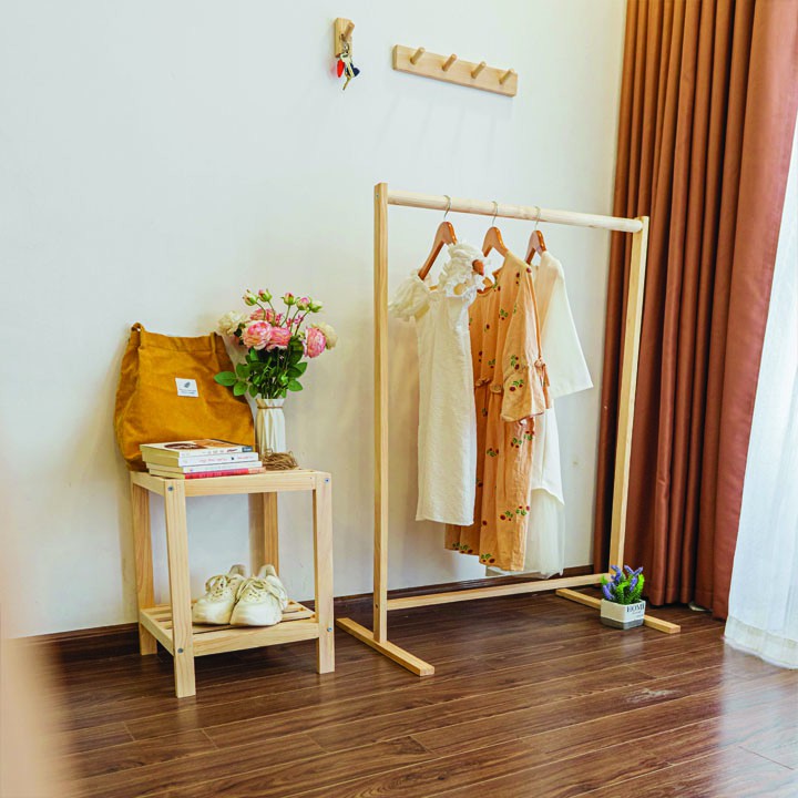 Giới thiệu Giá Treo Quần Áo Thanh Đơn - Kệ Treo Quần Áo Decor Phòng Phong Cách Hàng Quốc, Gỗ Thông Cao Cấp Bền Đẹp - KT: 126X88X44