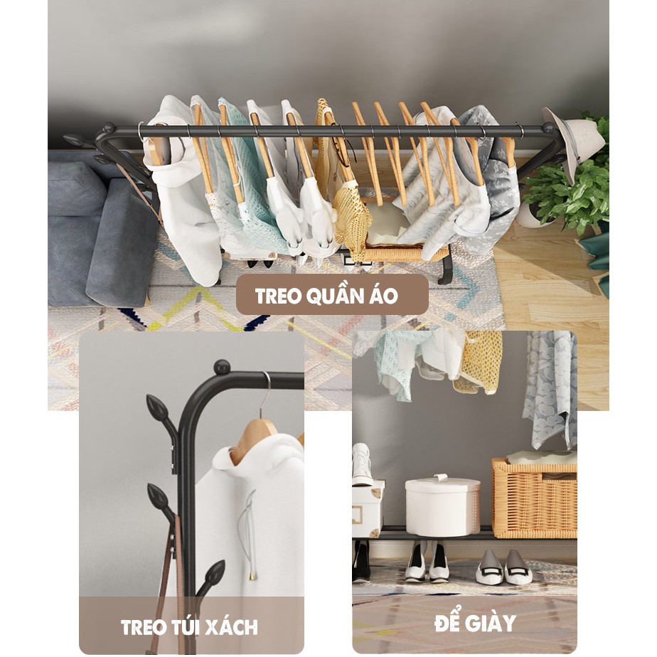 Giá treo kim loại Treo quần áo ở trên để giày dép ở dưới tiện lợi.Chân chắc chắn không có bánh xe.