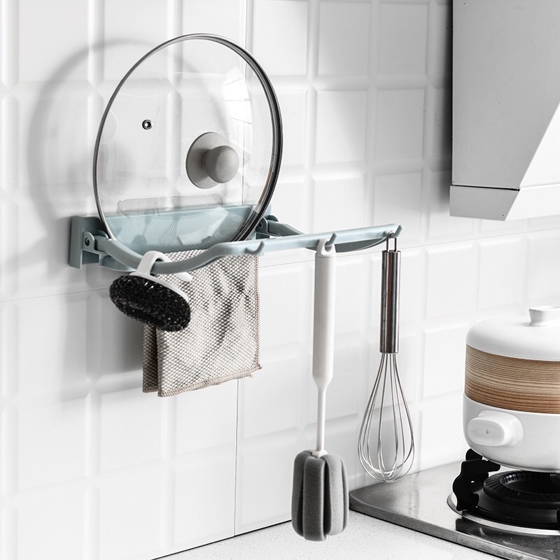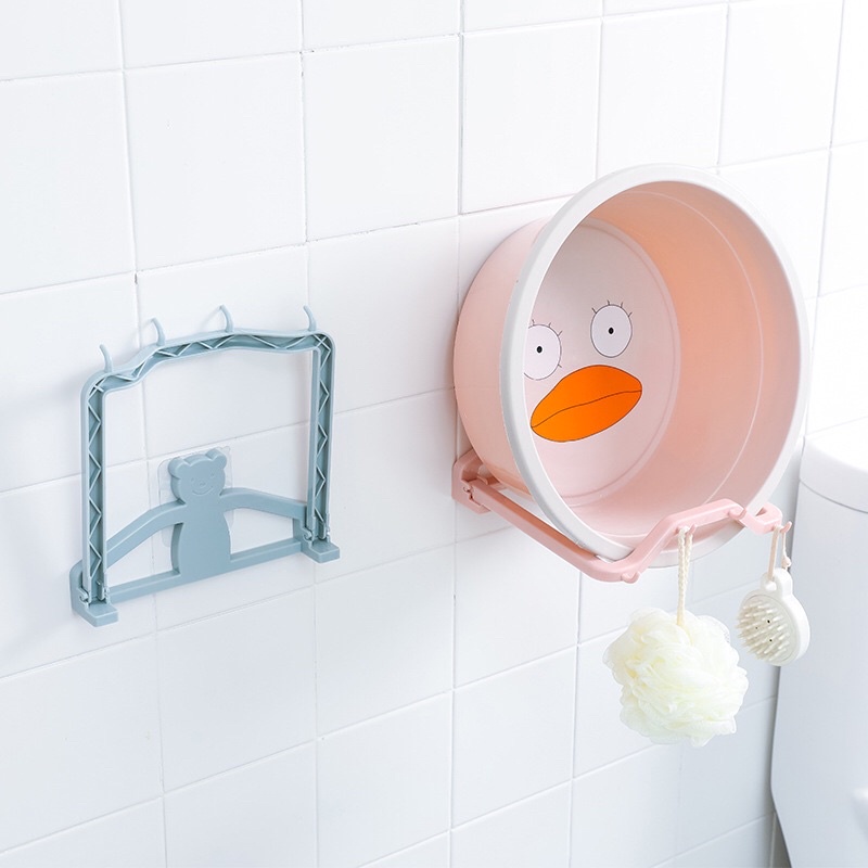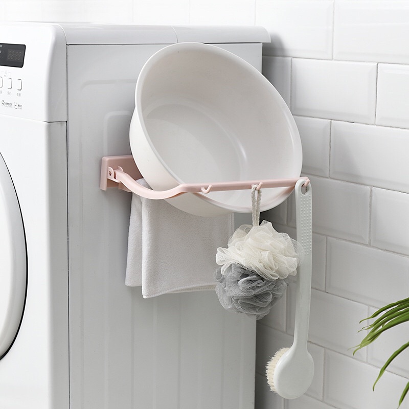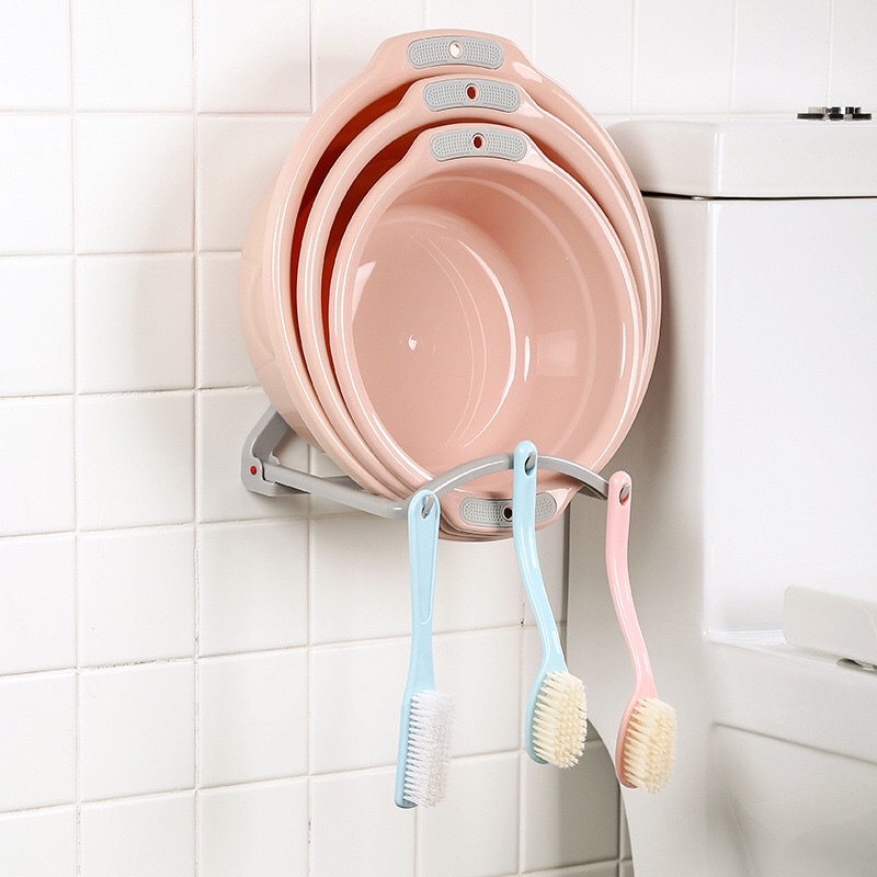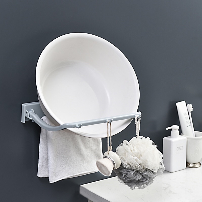 Giá treo thau chậu gấp gọn dán tường không cần khoan đục - Kệ treo thau chậu nhà tắm gấp gọn kèm 3 móc treo đa năng