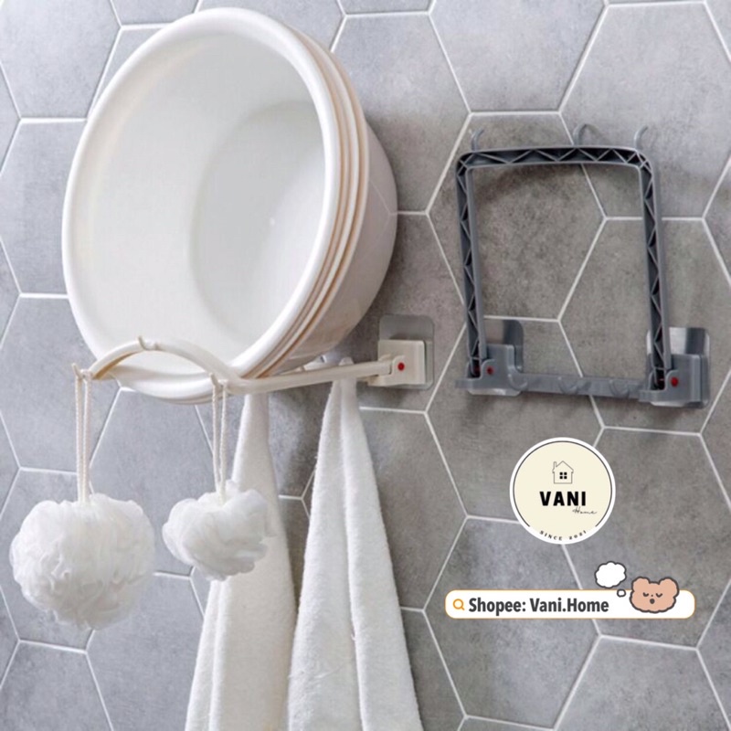 Nhà cửa & Đời sống > Đồ dùng phòng tắm > Kệ để đồ phòng tắm || Giá treo thau chậu gấp gọn dán tường không cần khoan đục - Kệ treo thau chậu nhà tắm gấp gọn kèm 3 móc treo đa năngCòn hàng