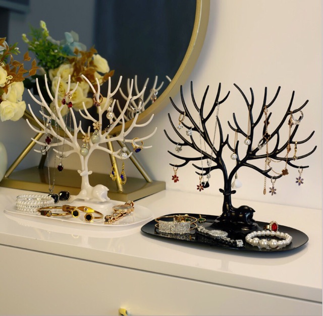 Giá treo trang sức hươu sao , giúp bạn lưu trữ trang sức gọn gàng . Phần đế của giá treo có thể để nước hoa mini , mỹ phẩm nhỏ ....💕💕 Để bàn make up là tuyệt vời lun nha 💕💕