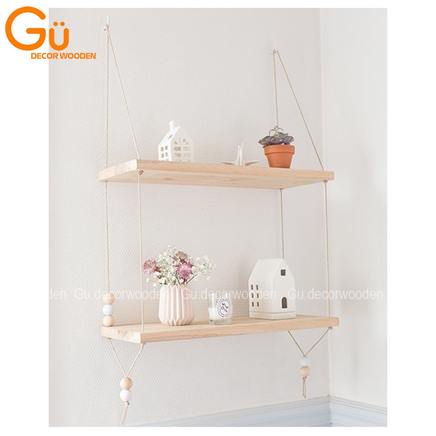 Gía Treo Trang Trí Phòng Ngủ / Kệ Gỗ Dây Thừng 2 tầng - Gu Decor Wooden Trang Trí Nhà Cửa