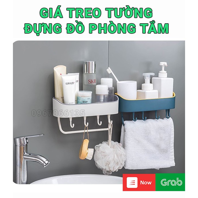 Giá treo tường đựng đồ nhà tắm hình chữ nhật có kèm móc treo bằng nhựa cao cấp 2 lớp